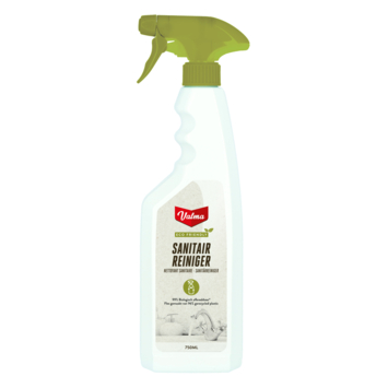 De Valma ECO Sanitairreiniger in de geur Citrus & Eucalyptus is een effectieve spray van 750 ml, ideaal voor het reinigen van toiletten, wastafels, chroom en tegelwerk. Deze kant-en-klare reiniger verwijdert gemakkelijk kalk, zeepresten en watervlekken. Het resultaat is een streeploze glans en een frisse geur.