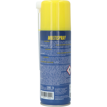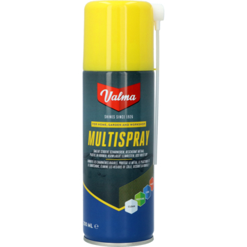 Valma Multispray werkt voor letterlijk honderden toepassingen. Of het nu een piepend scharnier is of een onwillig fietsslot, een verroeste moer of verweerd plastic, vervelende lijmresten of een slecht contact. Valma multispray kan het allemaal. Gebruiksaanwijzing: Bus goed schudden en bij gebruik rechtop houden. gelijkmatig opspuiten en afhankelijk van de toepassing afvegen of in laten werken.