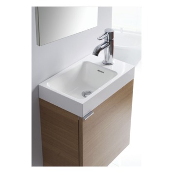 Deze set 'Agneta eiken' bestaat uit een vlakke spiegel, een onderkast en een design wastafel. Spiegel is 38cm breed en de onderkast is 40cm breed. Samen zijn zij perfect voor in de wat compactere badkamer. De vlakke spiegel is gemonteerd op stijlvol wit paneel. Daardoor vormt het een mooi geheel. De design wastafel is gemaakt van polybeton, wat een relatief goedkoop product is en enorm stevig is. De wastafel is uitgerust met overloopbeveiliging waardoor je zeker weet dat de wasbak niet overstroomt. De onderkast is voorzien van een functionele greep, waardoor je deze eenvoudig open en dicht kunt doen. Ben je op zoek naar een complete, maar ook compacte wastafel set? Dan is de Van Marcke Agneta wastafelmeubel set eiken wat je zoekt.