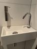 Een fijne kraan die genoeg ruimte laat om eronder je handen te wassen. Sierlijk model. Alleen de tekening van de kraan liet me denken dat de aansluitslang erbij geleverd werd. Dat was niet zo.