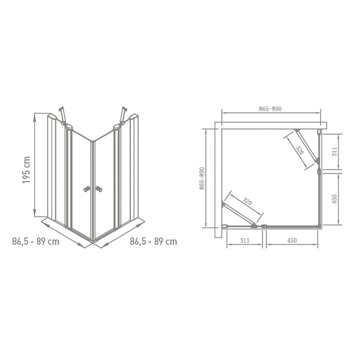 De douche hoekinstap met draaideuren van Van Marcke is gemaakt van getemperd glas met stijlvolle decorstroken. Het easy-clean glas met anti-kalkbehandeling zorgt ervoor dat je relatief weinig tijd kwijt bent aan de schoonmaak. Ook vertraagd dit de bacterievorming. Het glas is 6mm dik en beschikt over een magnetische sluiting. Zo weet je zeker dat de deur goed gesloten blijft tijdens het douchen. Wil je de opening van de douche in een hoek plaatsen? Dan is de Van Marcke Hoover douche hoekinstap met draaideuren 90x90x195 wat je zoekt. Wil je de hoekinstap toch iets kleiner, kijk dan even naar de Van Marcke Hoover douche hoekinstap met draaideuren 80x80x195