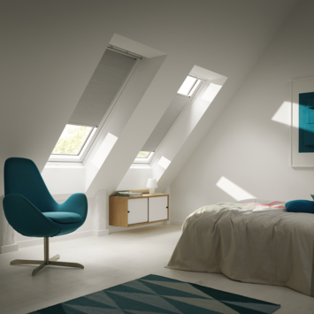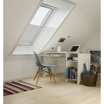 Het VELUX verduisterend plisségordijn beschikt over een dubbel plissé met aluminium honingraatstructuur aan de binnenzijde die de isolatie tot 26% verbetert.