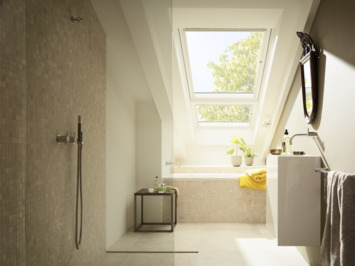 Moet jouw dakraam vochtbestendig zijn? Dan is het VELUX tuimelvenster vochtbestendig mat glas wit MK04 78x98 cm het juiste exemplaar voor jou. Het dakraam is voorzien van een vochtbestendige kunststof beschermlaag, die je makkelijk kunt schoonmaken. De kern van het raam is gemaakt van PEFC-gecertificeerd grenenhout en voorzien van melkglas, zodat niemand van buitenaf in jouw (bad)kamer kan kijken. Door het speciale HR++ glas (dubbel glas waar een ultradunne en onzichtbare metaallaag op is aangebracht die stralingswarmte tegenhoudt) en het isolatiemateriaal in het frame hoef je niet extra te stoken, omdat de warmte binnenshuis blijft. De handgreep is even breed als het venster, waardoor je hem altijd makkelijk kunt openen en sluiten. Door de smalle kozijnen geeft dit dakraam maximale daglichtinval, zodat het overdag lekker licht is. Daarnaast dempt het raam tot wel 35dB aan omgevingsgeluid, dus word je minder gestoord door geluiden van buitenaf. Dit VELUX-tuimelvenster is verkrijgbaar in 10 verschillende maten, waarvoor je een bijpassend gootstuk voor een goede afvoer van regenwater kunt kopen. Kortom: met dit VELUX-tuimelraam kijkt niemand van buitenaf je (bad)kamer in.