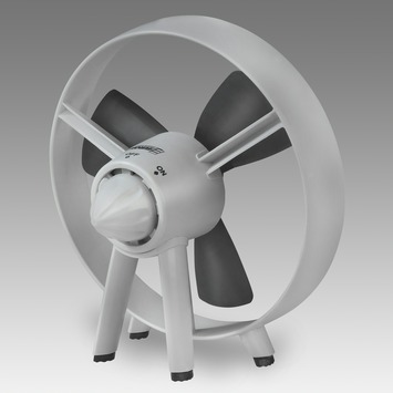 vanwege de rubberen bladen is deze geluidloos en veilig voor kleine kinderen. ideaal om naast het bed te plaatsen, niet enkel voor verfrissing maar hij blaast ook de vervelende muggen weg ! overdags gebruik ik hem op kantoor.