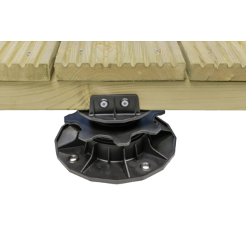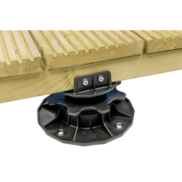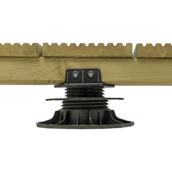 Verstelbare balkdrager zijn ideaal te gebruiken als fundering voor een vlonderterras. Deze kan gebruikt worden bij een vlonderterras met een fundering op betonnen tegels of op een dakterras. De balkdrager is verstelbaar van 3,5 cm tot 7 cm. Hiermee kan een terras gelegd worden op een ondergrond met een lichte helling door de balkdragers op verschillende hoogtes te verstellen om deze compenseren. Hierdoor is de uitkomst altijd een recht terras. Deze verstelbare terrasdrager is ook ideaal om een gewenste hoogte te bereiken op bijvoorbeeld een balkon of een dakterras.