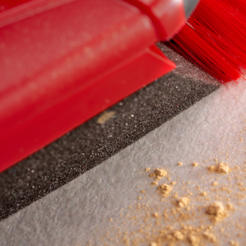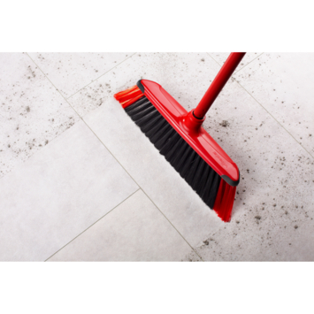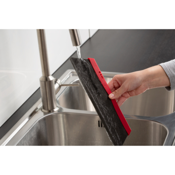De fijne zwarte vezels vangen vuil en haar op, terwijl de stevige rode vezels makkelijk tot in de hoeken gaan. Het unieke schuimblad zorgt ervoor dat het stof niet opwaait en de allerkleinste deeltjes meeneemt.