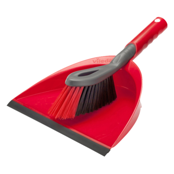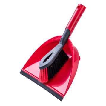Het 2-in-1 stoffer en blik van Vileda is superhandig, omdat het perfect in elkaar past. Gemaakt uit rode kunststof die tegen een stootje kan.
