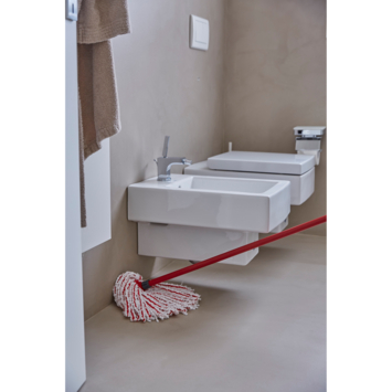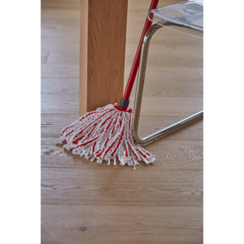 De rode vezels zijn ontworpen om hardnekkige vlekken en vervuiling aan te pakken, terwijl de witte vezels uitstekende absorptie en stofafname bieden. Dit systeem is niet alleen effectief tegen hardnekkig vuil, maar ook eenvoudig in gebruik: de dweil kan gewassen worden tot 60 °C en is perfect te combineren met de SuperMocio-emmer en extender voor optimale resultaten.