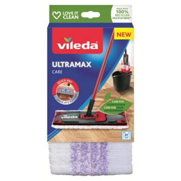 Ontdek de Vileda Ultramax Care, perfect voor het reinigen van delicate vloeren zoals parket. Deze speciale parkethoes is gemaakt van 100% gerecycleerde microvezels, waardoor jouw vloeren veilig en efficiënt gereinigd worden.