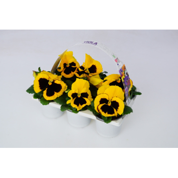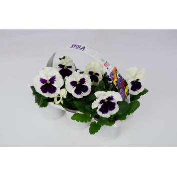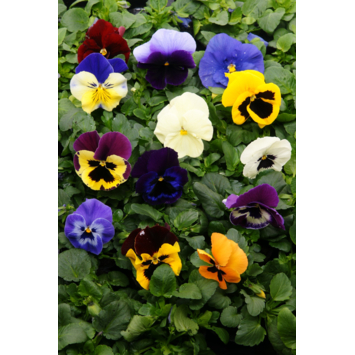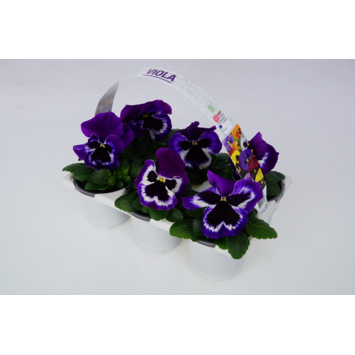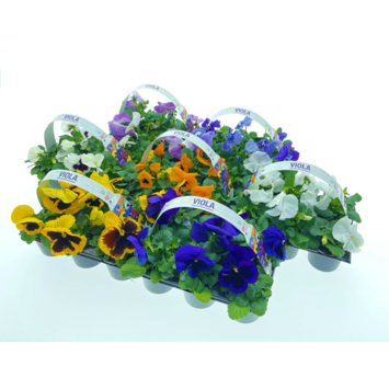 Viola F1 zijn de grootbloemige viooltjes die men in diverse kleurencombinaties kan vinden. Het is een hybride van de andere soorten viooltjes. Ze komen in de kleuren wit, violetblauw, lavendel, paars, oranje, geel, roze, rood, zwart. Eén-, twee- tot driekleurig. Komt reeds in de herfst al in bloei, de bloei wordt dan wel onderbroken in de winter als het vriest maar zodra het weer beter wordt bloeien ze verder tot in mei. Geeft de voorkeur aan een rijke, vochtige maar goed doorlatende grond.