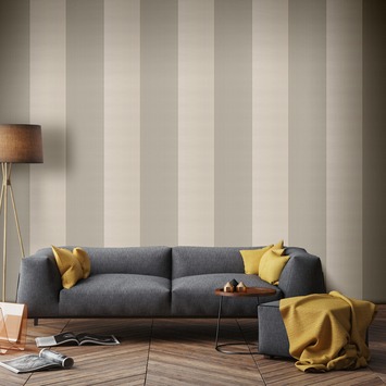 Met het vliesbehang - Brede streep taupe-goud 30-389 van Kelly Hoppen kan iedereen behangen. Vliesbehang is zowel gemakkelijk aan te brengen als te verwijderen, waarbij je geen behangtafel of afstomer nodig heeft. Je brengt eenvoudig de lijm aan op de muur en het behang kan worden geplakt. Voor een zo goed mogelijk resultaat dienen de te beplakken oppervlakken droog, egaal van kleur en vlak te zijn. Dit vliesbehang is onderdeel van het ruime assortiment vliesbehang bij GAMMA, waarmee je huis voorzien kan worden van een moderne, klassieke of een sfeervolle stijl. Kortom, kies voor vliesbehang als je op zoek bent naar een gemakkelijke en snelle manier om je kamer een nieuwe uitstraling te geven volgens de laatste woontrends.