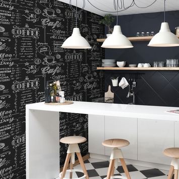 Met het vliesbehang - Coffee krijtmuur zwart-wit 32-993 van Superfresco Easy kan iedereen behangen. Vliesbehang is zowel gemakkelijk aan te brengen als te verwijderen, waarbij je geen behangtafel of afstomer nodig hebt. Op een rol zit 10 meter en het is 52 centimeter breed. Je brengt eenvoudig de lijm aan op de muur en het behang kan worden geplakt. Voor een zo goed mogelijk resultaat dienen de te beplakken oppervlakken droog, egaal van kleur en vlak te zijn. Dit vliesbehang is onderdeel van het ruime assortiment vliesbehang bij GAMMA, waarmee je huis voorzien kan worden van een moderne, klassieke of een sfeervolle stijl. Kortom, kies voor vliesbehang Coffee krijtmuur zwart-wit 32-993 als je op zoek bent naar een gemakkelijke en snelle manier om je kamer een nieuwe uitstraling te geven volgens de laatste woontrends.