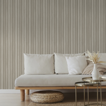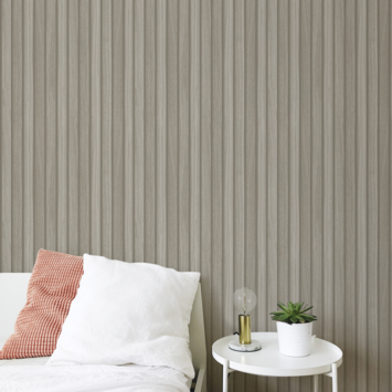 Heel mooie behang, lijkt op een echte lattenwand. Zeker een aanrader
