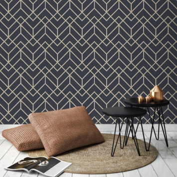 Vliesbehang Losanges filaires Donkerblauw/goud (106568)