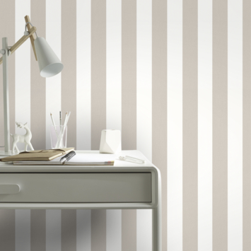Met het vliesbehang - Lynn strepen taupe-gebroken wit 33-185 van Superfresco Easy kan iedereen behangen. Vliesbehang is zowel gemakkelijk aan te brengen als te verwijderen, waarbij je geen behangtafel of afstomer nodig hebt. Op een rol zit 10 meter en het is 52 centimeter breed. Je brengt eenvoudig de lijm aan op de muur en het behang kan worden geplakt. Voor een zo goed mogelijk resultaat dienen de te beplakken oppervlakken droog, egaal van kleur en vlak te zijn. Dit vliesbehang is onderdeel van het ruime assortiment vliesbehang bij GAMMA, waarmee je huis voorzien kan worden van een moderne, klassieke of een sfeervolle stijl. Kortom, kies voor vliesbehang Lynn strepen taupe-gebroken wit 33-185 als je op zoek bent naar een gemakkelijke en snelle manier om je kamer een nieuwe uitstraling te geven volgens de laatste woontrends.
