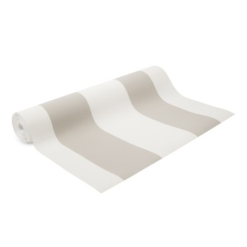 Vliesbehang Streep wit-taupe 101817
