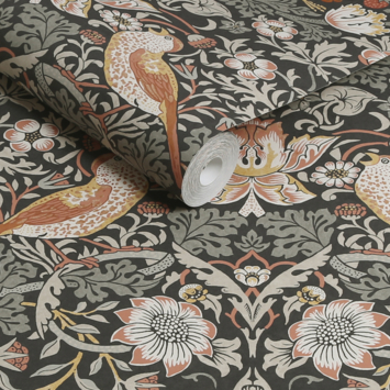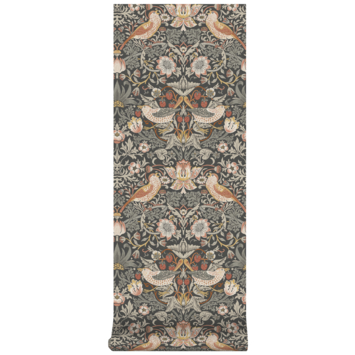 Vliesbehang William Morris at Home Strawberry Thief Antraciet (dessin 124230)