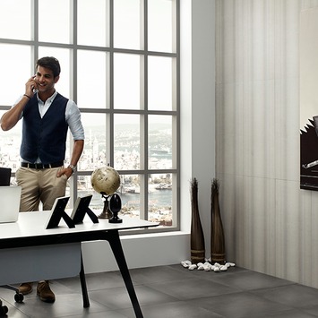 Mooie betonlook-tegel en met formaat 60x60 is de vloer snel gelegd.