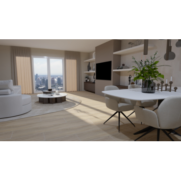 Verander je interieur met de houtlook tegels van deze collectie. Deze keramische tegels geven de warme sfeer van echt hout, zonder het onderhoud dat echt hout vereist. Perfect voor woonkamers en keukens waar je een natuurlijke uitstraling wilt. Dankzij de glazuurlaag en lichte reliëfstructuur hebben ze een unieke uitstraling en zijn ze eenvoudig schoon te houden. Met een dikte van 10 mm en een verpakking die 1,35 m² dekt, zijn deze tegels praktisch en aantrekkelijk. Kies voor de houtlook tegels en combineer stijl met functionaliteit in jouw woning.