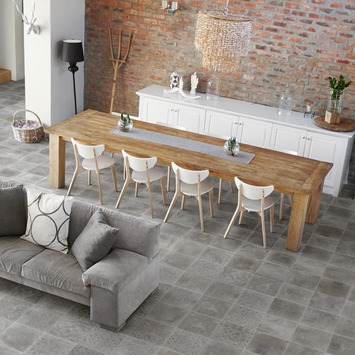 Vloertegel Dust Grigio Decor 30x30 cm is een trendy grijs decor in betonlook. Mooi in combinatie met de bijpassende uni vloertegel.