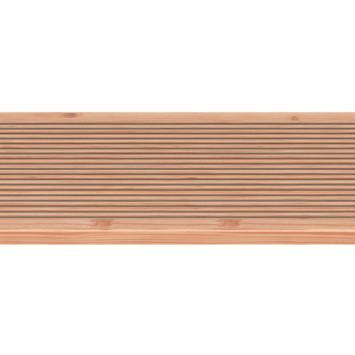 De vlonderplank is aan beide zijden voorzien van groeven zodat er een tweezijdig profiel ontstaat. Dit profiel geeft niet alleen een luxe uitstraling, maar zorgt ook voor voldoende grip tijdens natte weersomstandigheden.