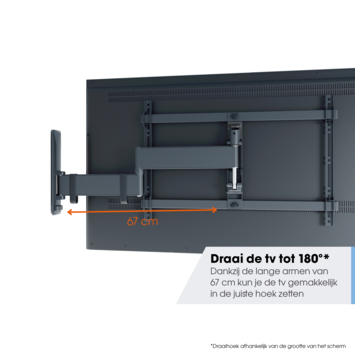 - Flexibele Positionering: Draai de tv tot 180° en kantel deze 20° voor optimaal kijkcomfort vanuit elke hoek.