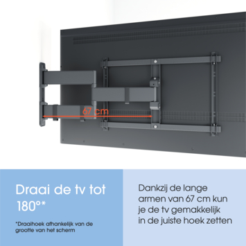Optimale Flexibiliteit: Met een draaibereik van 180° en een kanteling van 10° kun je altijd het beste kijkcomfort bereiken, ongeacht waar je in de kamer zit.