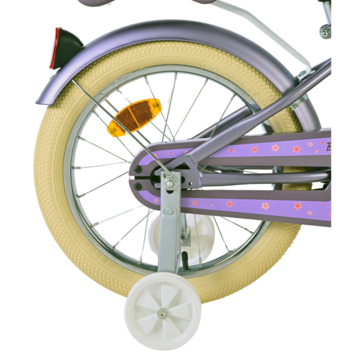 De Volare Blossom 16 inch kinderfiets in paars maakt leren fietsen extra leuk en veilig! De fiets heeft een handrem, een terugtraprem, afneembare zijwieltjes en een gesloten kettingkast, zodat je kind met vertrouwen kan leren fietsen.