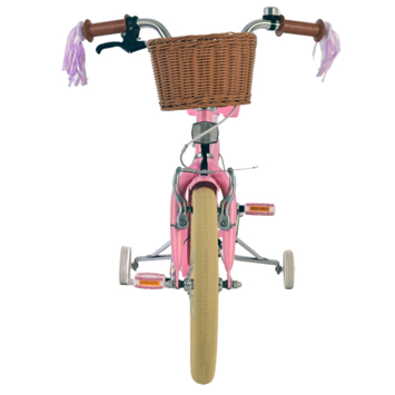 De fiets biedt ook veel comfort. Het zachte zadel, het poppenzitje en het rieten mandje maken de ritjes extra fijn. De vrolijke handvatversieringen geven de fiets een speelse uitstraling, en het verstelbare stuur en zadel zorgen ervoor dat de fiets meegroeit met je kind.