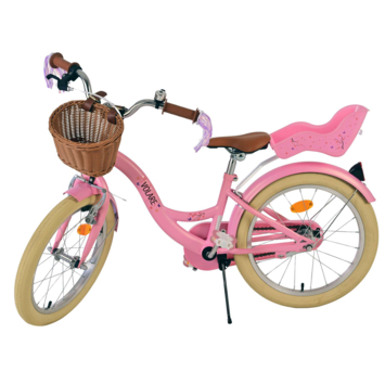 De Volare Blossom 18 inch kinderfiets is een veilige en comfortabele keuze voor jonge fietsers. Met zowel een handrem als een terugtraprem kan er gecontroleerd geremd worden. De gesloten kettingkast beschermt tegen vuil en voorkomt dat kleding vast komt te zitten.