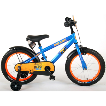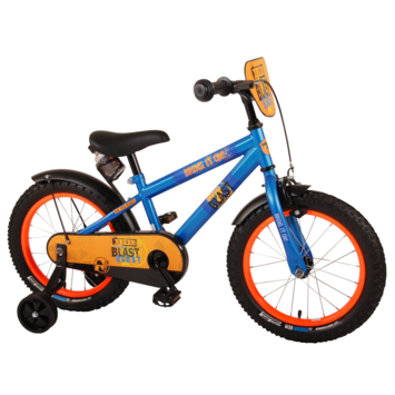 De NERF games worden nóg spannender met de snelheid van deze stoere fiets. Deze super coole fiets is helemaal in de stijl van de oranjeblauwe NERF blasters. Het geometrische frame maakt van deze fiets een echte eyecatcher. De fiets heeft extra brede 16 inch fat banden, die de fiets geschikt maken voor jongens tussen de 4 en 6 jaar oud met kledingmaat 104-110. Ook de spatborden zijn extra groot en mooi gevormd waardoor zij al het opspattende vuil tegenhouden. Met de afneembare zijwielen kan ieder kindje snel leren fietsen. De handgrepen en het zadel zijn zacht voor extra comfort en met de bidonhouder inclusief bidon heb je altijd iets te drinken bij je. Ter bescherming van de kleine vingertjes is de kettingkast gesloten. De fiets is voor 85% afgemonteerd.