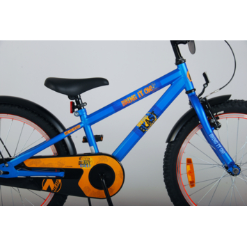 NERF 20 inch kinderfiets. De NERF games worden nóg spannender met de snelheid van deze stoere fiets. Deze super coole fiets is helemaal in de stijl van de oranjeblauwe NERF blasters. Het geometrische frame maakt van deze fiets een echte eyecatcher. De fiets heeft extra brede 20 inch fat tires, die de fiets geschikt maken voor jongens tussen de 6 en 8 jaar oud met kledingmaat 116-122. Ook de spatborden zijn extra groot en mooi gevormd waardoor zij al het opspattende vuil tegenhouden. Voor de veiligheid heeft de fiets reflectoren aan de voorkant en achterkant. Verder heeft de fiets een standaard en een fietsbel. De handgrepen en het zadel zijn zacht voor extra comfort.. Ter bescherming van de kleine vingertjes is de kettingkast gesloten. De fiets is voor 85% afgemonteerd. It's NERF or Nothin'!