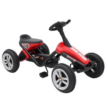 Deze Volare Mini Go Kart in de kleur rood heeft een stoer offroad uiterlijk en is geschikt voor kinderen van 3 tot 5 jaar oud. Deze Go Kart heeft vier plastic wielen met rubber profiel wat het rijden comfortabel maakt. De skelter heeft een metaal frame en een gesloten kettingkast. Het trapsysteem is vooruit en achteruit rijdend en heeft daardoor geen rem. Speciaal ontworpen voor kleine kinderen die nog niet bekend zijn met een remsysteem. Leren trappen was nog nooit zo makkelijk! Met de Volare Mini Skelter doe je de eerste trapervaring op. De afmetingen van de Go Kart zijn 90*48*52,5 centimeter en kan maximaal belast worden met 25 kilogram.