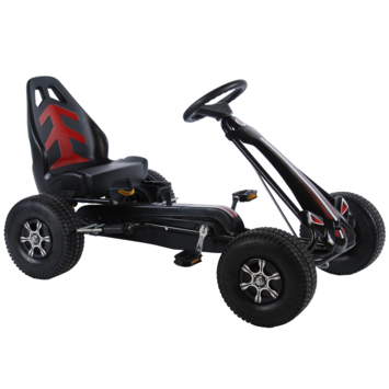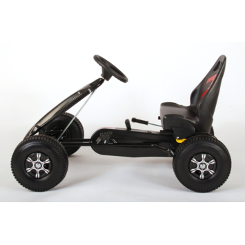 Volare Go Kart Racing Car groot met luchtbanden. Deze Volare Go Kart is er een voor de echte stoere Mans. De Go Kart is voorzien van extra brede luchtbanden met kunststof velgen. De kettingkast is gesloten. De Go Kart heeft vrijloop en een hand band-brake rem. Verder is hij verstelbaar in lengte.