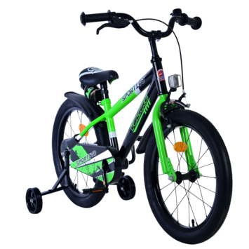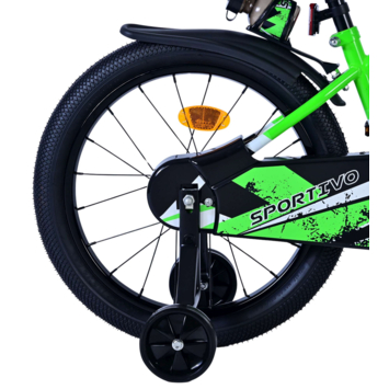 De Volare Sportivo 18 inch kinderfiets is de perfecte keuze voor jonge fietsers die graag buiten op pad gaan. Dankzij het stevige stalen frame in een stoere groen-zwarte kleur is deze fiets robuust en sportief.