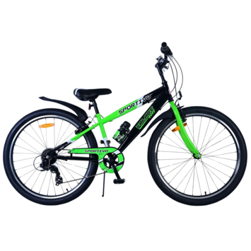 Met de Volare Sportivo 26 inch kinderfiets in groenzwart is fietsen een feest! De fiets heeft twee handremmen voor extra controle en 7 versnellingen voor een soepele rit, of het nu naar school of naar vriendjes is. Reflectoren in de wielen voor en achter zorgen voor zichtbaarheid, zelfs in het donker. De fiets is uitgerust met een leuke bel en een halfopen kettingkast om kleding uit de ketting te houden.