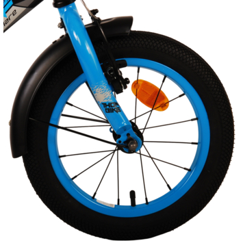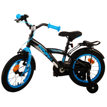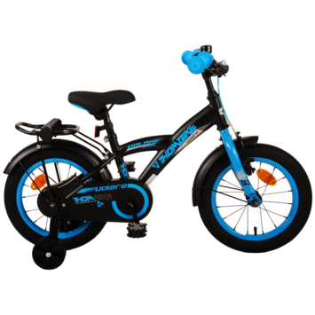 De Volare Thombike 14 inch kinderfiets maakt leren fietsen niet alleen gemakkelijk, maar ook leuk! Deze zwarte fiets met blauwe accenten biedt maximale veiligheid met een handrem, terugtraprem, een gesloten kettingkast en afneembare zijwieltjes. Zo kan je kind altijd veilig stoppen en zijn of haar rit onder controle houden.