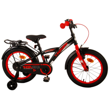 De Volare Thombike 16 inch kinderfiets is de perfecte combinatie van stijl en veiligheid. Met zijn zwarte frame en rode accenten ziet hij er stoer uit, en dankzij de handrem, terugtraprem en gesloten kettingkast is je kind altijd goed beschermd.