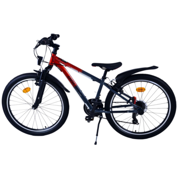 Fietsen wordt een feestje voor je kind met de Volare XC Race 24 inch in rood-grijs. Deze sportieve fiets heeft 21 versnellingen van Shimano en revoshifters, waardoor je kind soepel kan schakelen, of het nu gaat om een heuvelachtige rit of een lange fietstocht. In plaats van een terugtraprem heeft de fiets twee handremmen, wat zorgt voor een snelle stop en een veilige rit. De reflectoren in de wielen, voor en achter op de fiets, en de verlichting op batterij zorgen ervoor dat je kind altijd goed zichtbaar is.
