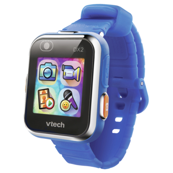 VTech Kidizoom Smartwatch DX2 blauw. De nieuwe generatie selfie smartwatch! Het horloge is voorzien van een kleuren touchscreen met analoge en digitale tijdweergave én 3D weergave. Met 2 ingebouwde camera's: maak selfies, leg te gekke momenten en avonturen vast op foto en video én bewerk ze met coole effecten, kaders en filters. Altijd en overal speelplezier met de ingebouwde spellen en activiteiten. Vang monsters met behulp van augmented reality! Leer klokkijken met behulp van gesproken tijd en gebruik je eigen foto als klokweergave. Vele functies zoals stemopname, stemvervormer, spellen, stopwatch, timer, wekker en kalender. Speel drie sportieve spellen met behulp van de ingebouwde bewegingssensor. Download nog meer spellen, klokweergaves en foto-effecten via Explore Park. Voorzien van ingebouwde oplaadbare accu (inclusief micro USB-kabel). Spatbestendig, stevig en duurzaam design. Wordt in fraaie geschenkverpakking geleverd. Geschikt voor kinderen van 5 tot 13 jaar.