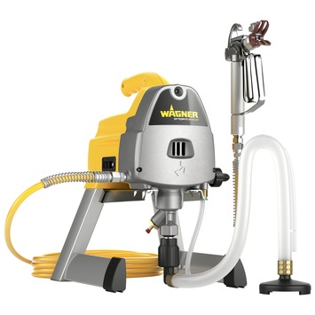 De Wagner verfspuit ProjectPro 117 is een compacte en mobiele plunjerpomp met draaggreep. Het systeem is voor binnen en buiten en verwerkt dispersie- en latexverven voor binnen alsook lakken, beitsen, vernissen, houtbeschermingsmiddelen op waterbasis en op solventbasis. Gevelverf spuiten met dit apparaat is niet mogelijk. De verf wordt via een slang direct uit de verfemmer aangezogen en door de spuitpistool met een perfect dekkend resultaat gespoten. De maximale druk bedraagt 200 bar en de maximale verfhoeveelheid 1L/min. Dankzij de 7,5 meter lange hogedrukslang beschikt u over een groot werkbereik.