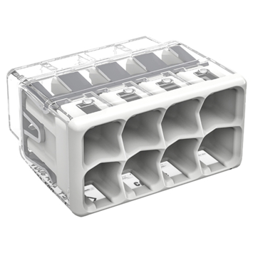 Met de WAGO lasklem 8-voudig 0,5-2,5 mm² bespaar je ruimte en tijd bij het aansluiten van draden. Deze compacte klem is geschikt voor 8 draden van 0,5 tot 2,5 mm², waardoor hij ideaal is voor kleine las- en inbouwdozen. De transparante behuizing maakt het eenvoudig om te controleren of alles goed vastzit, en de vochtdichte behuizing biedt extra bescherming tegen omgevingsfactoren. Met een temperatuurweerstand tot 60 °C is deze lasklem betrouwbaar en veelzijdig inzetbaar.