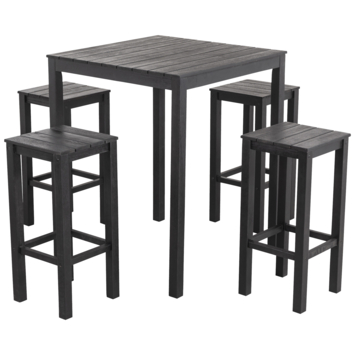Op zoek naar een praktische en stijlvolle barset voor je tuin? De Wakefield Akadia is een elegante keuze. Deze set, gemaakt van hoogwaardig eucalyptus hout, biedt plaats aan 4 personen en bestaat uit een stevige vierkante bartafel en 4 comfortabele krukken.