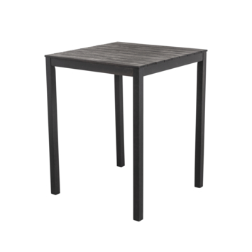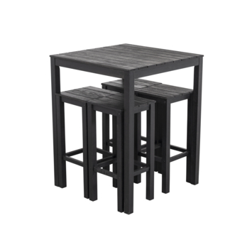 De tafel heeft een hoogte van 75,5 cm en een compact tafelblad van 35 cm bij 35 cm. Door het gebruik van gebeitst hout is de barset niet alleen mooi, maar ook beter beschermd tegen weersinvloeden.