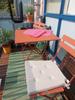 Nice solid looking table, that fits 2 people comfortabley for eating lunch in the sun.