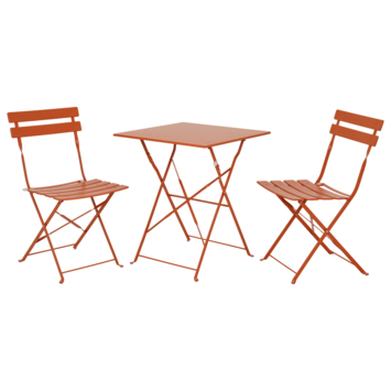 De bistroset Nancy van Wakefield biedt de perfecte combinatie van stijl en functionaliteit voor kleinere buitenruimtes. Deze set bestaat uit twee stoelen en een vierkante tafel, allemaal in een moderne terracotta kleur. De set is ideaal voor twee personen en biedt genoeg ruimte voor een gezellige maaltijd of een rustige middag buiten.