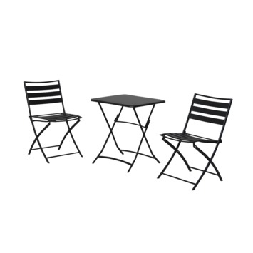 De bistroset Reims van Wakefield is een perfecte keuze voor kleinere buitenruimtes. Deze set bestaat uit twee stoelen en een vierkante tafel van zwart metaal, ontworpen voor twee personen. Het strakke en moderne ontwerp maakt deze set ideaal voor een gezellige lunch of een kop koffie in de buitenlucht.
