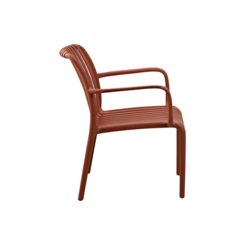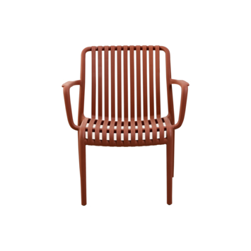 De Wakefield fauteuil Fleur in terracotta is een loungestoel van kunststof die direct warmte en comfort toevoegt aan je buitenruimte.