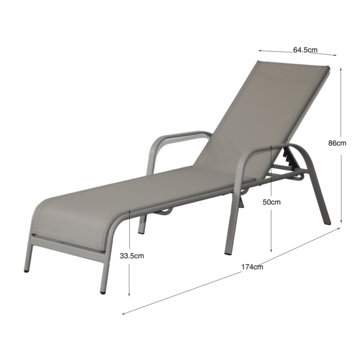 Met een lengte van 167 cm en verstelbare rugleuning in 4 standen, kun je de rugleuning gemakkelijk aanpassen voor het ultieme comfort. Het bekleding in taupe textileen en taupe gecoat metalen frame zorgen voor zowel stijl als functionaliteit, en het ligbed is ideaal voor ontspannen momenten in je tuin of op je terras.