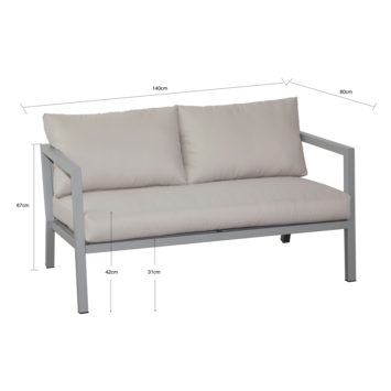 Wakefield loungebank Biarritz 140 cm grijs metaal